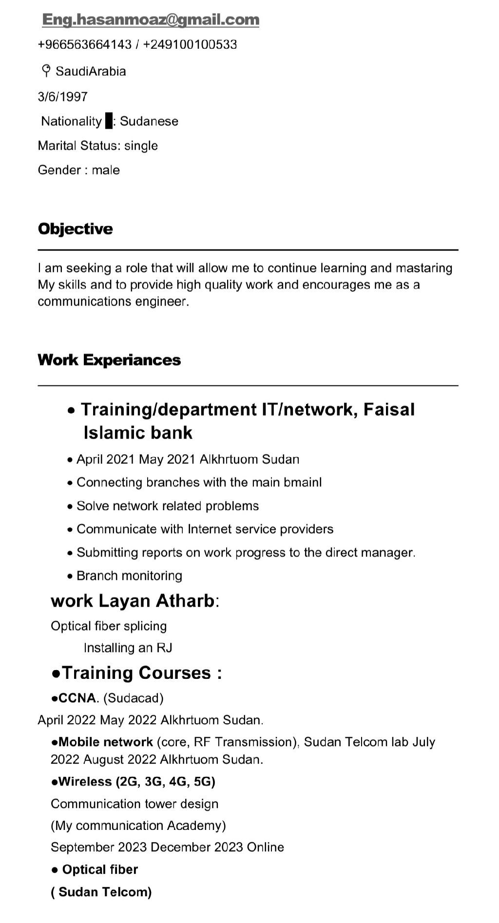 شاب سوداني 26 لدي اقامة ورخصة قيادة خريج هندسة اتصالات 2022 ابحث عن عمل في أي مجال أجيد التعامل مع الحاسب ومكينات لحام الفايبر متواجد في الجنوب المملكة وجدة