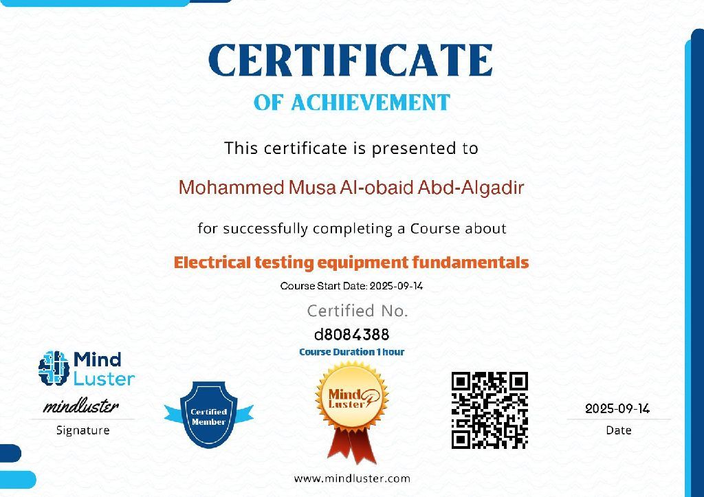 مهندس كهربائي تخصص قدرة بخبرة سنة من شركة سام العالمية حاصل على شهادة في مجال السلامة والصحة المهنية ومتخصص في الصيانة الكهربائية وعضو في IEEE القسم التقني