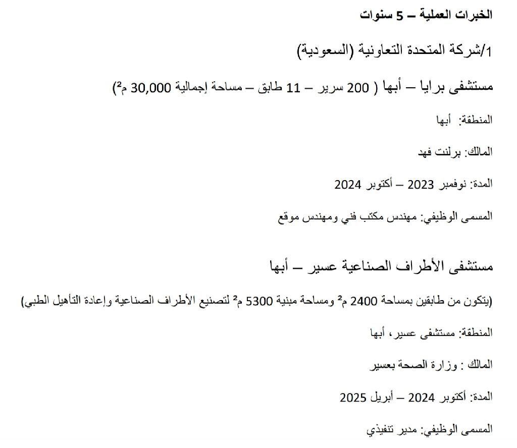 مهندس مدني خبرة بأعمال تنفيذ الخرسانات والتشطيبات وجميع أعمال المكتب الفني (تسعير - حصر - مستخلصات - شوب درونج واعداد جميع المخططات التنفيذية) شاركت في تنفيذ وإدارة عدد من المشاريع الطبية بالمملكة ولدي رخصة قيادة سارية