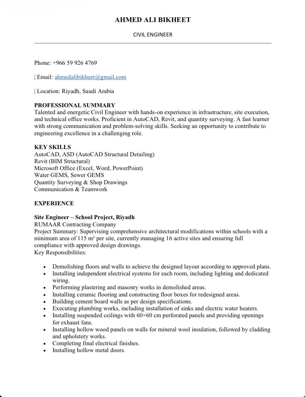 مهندس مدني تنفيذ مواقع، خبرة 3 سنوات في أعمال الخرسانات والتشطيبات، اجادة قراءة المخططات والاشراف الميداني، متاح للعمل فورا في الرياض