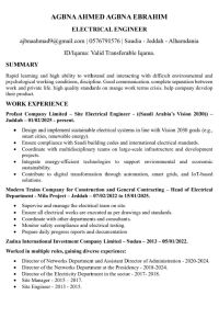 مهندس كهرباء خبرة 15 سنة في تنفيذ المخططات السكنية والتجارية وشبكات الضغط المتوسط والمنخفض. آخر الأعمال بمخطط ميلاء السكني في جدة الحمدانية ومشروع (علي خطاه)