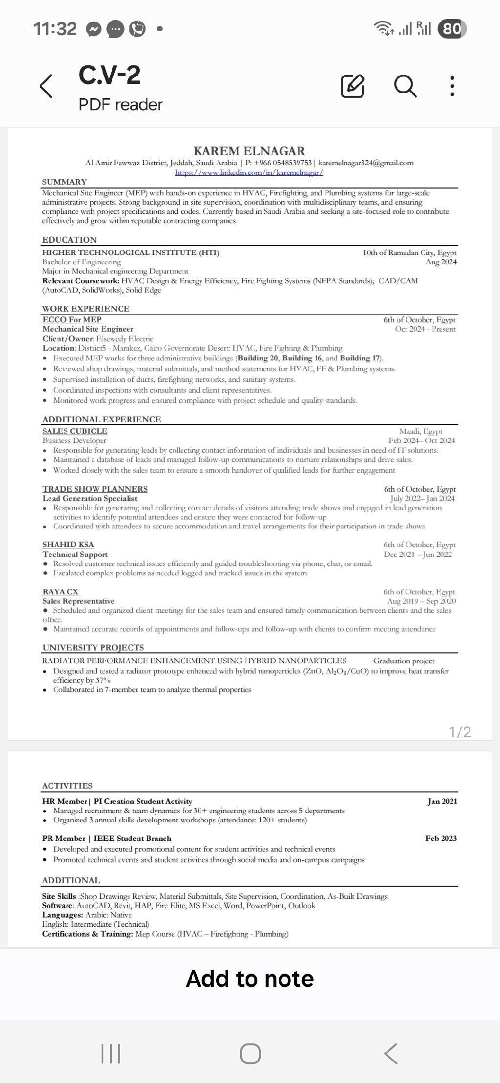 مهندس ميكانيكا خبرة سنة ونصف في أعمال الموقع (HVAC - Firefighting - Plumbing) شاركت في مشروعات ادارية وتجارية. مقيم حاليا في جدة، إقامة سارية