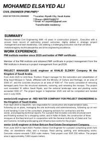 مهندس مدني خبرة 9 سنوات في المشاريع الانشائية حاصل علي شهادة pmp في ادارة المشروعات سابقه أعمال مع المشاريع الحكوميه كمدير مشروع