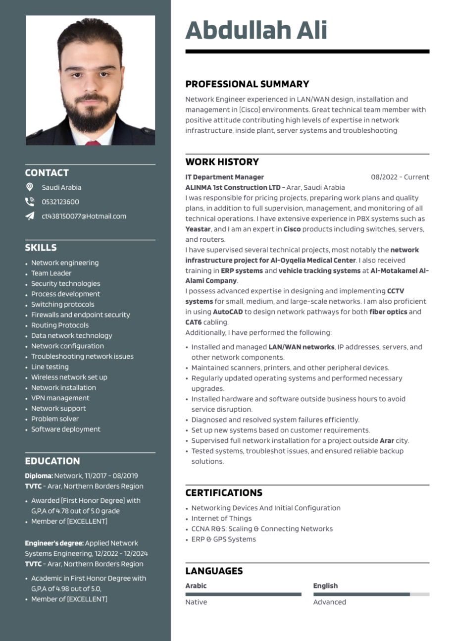 مهندس أنظمة شبكات ب خبرة 3 سنوات في مجال ادارة أقسام تقنية المعلومات وأنجزت عدة مشاريع داخل السعودية
