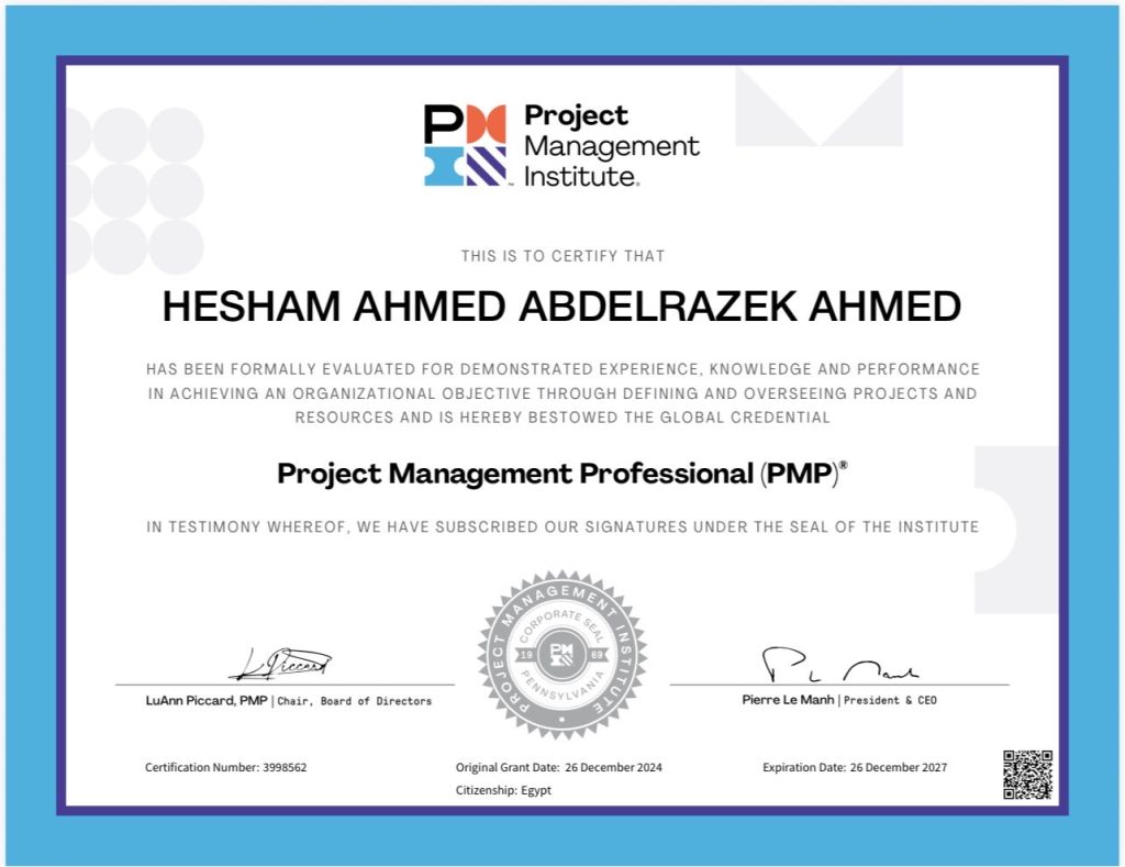 مدير مشروع مهندس مدني مصري حاصل على شهادة ادارة المشاريع الاحترافية PMP خبرة 16 سنة بالمملكة العربية السعودية بمشاريع الانشاءات ومشاريع تنفيذ وتشغيل وصيانة شبكات المياه والصرف الصحي والمحطات ومشاريع ايصال خدمات المياه والصرف الصحي ولدى مهارات متنوعة لدراسة المشاريع وتنفيذها طبقا للجدول الزمني وخطة التكاليف المعتمدة لدى اعتماد من شركة المياه الوطنية ومن الهيئة الهندسية ومتاح نقل كفالة