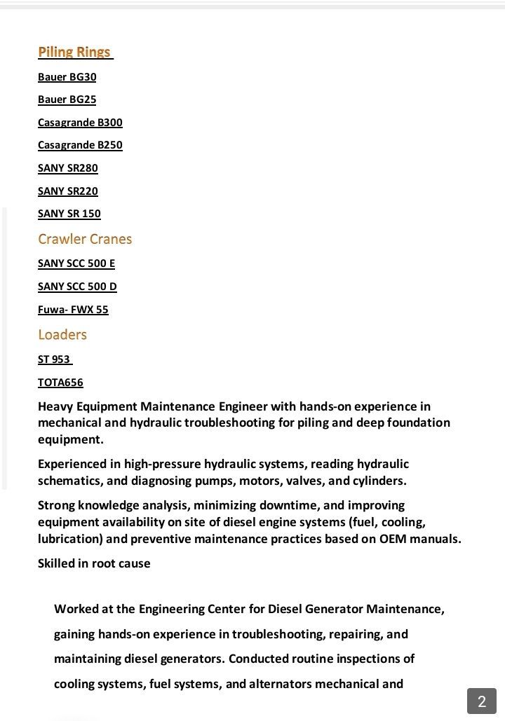 مهندس صيانة معدات حفر أساسات وخوازيق عميقة