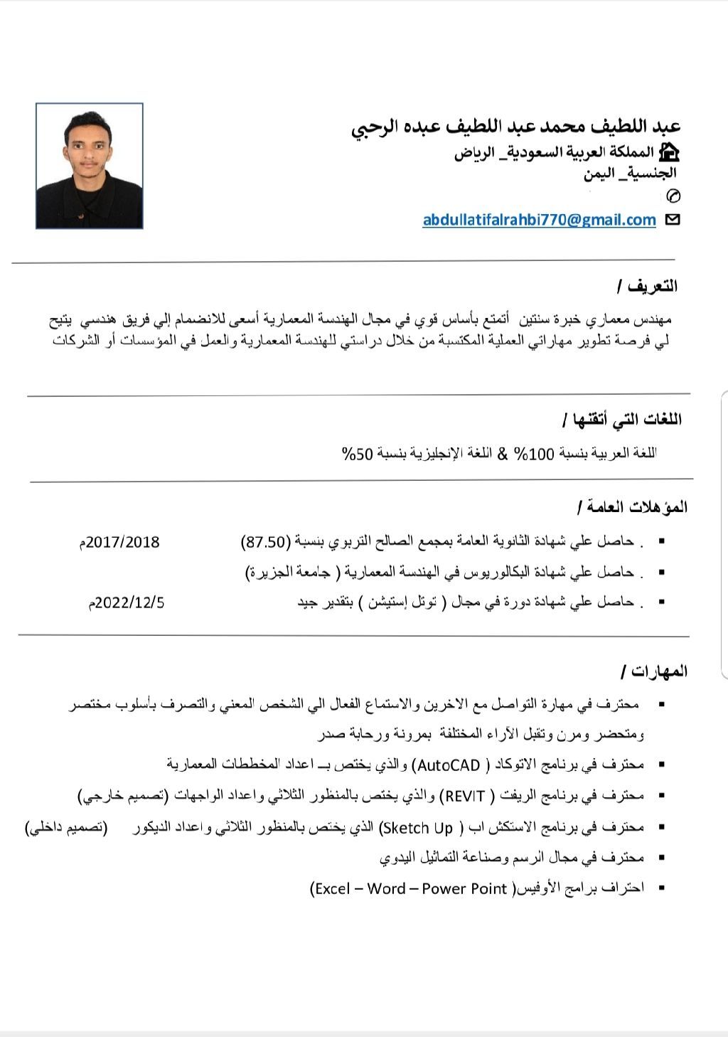 مهندس معماري يمني مقيم. لدي الكثير من المهارات في مجال العمارة للعمل في المكاتب الهندسية للمخططات الهندسية والتصميم بأنواعة تصميم معماري. تصميم 3D. تصميم. تنسيق مواقع رسومات تنفيذية. محترف في استخدام البرامج الهندسية بأنواعها AutoCAD + SketchUp + Lumion + Enscape