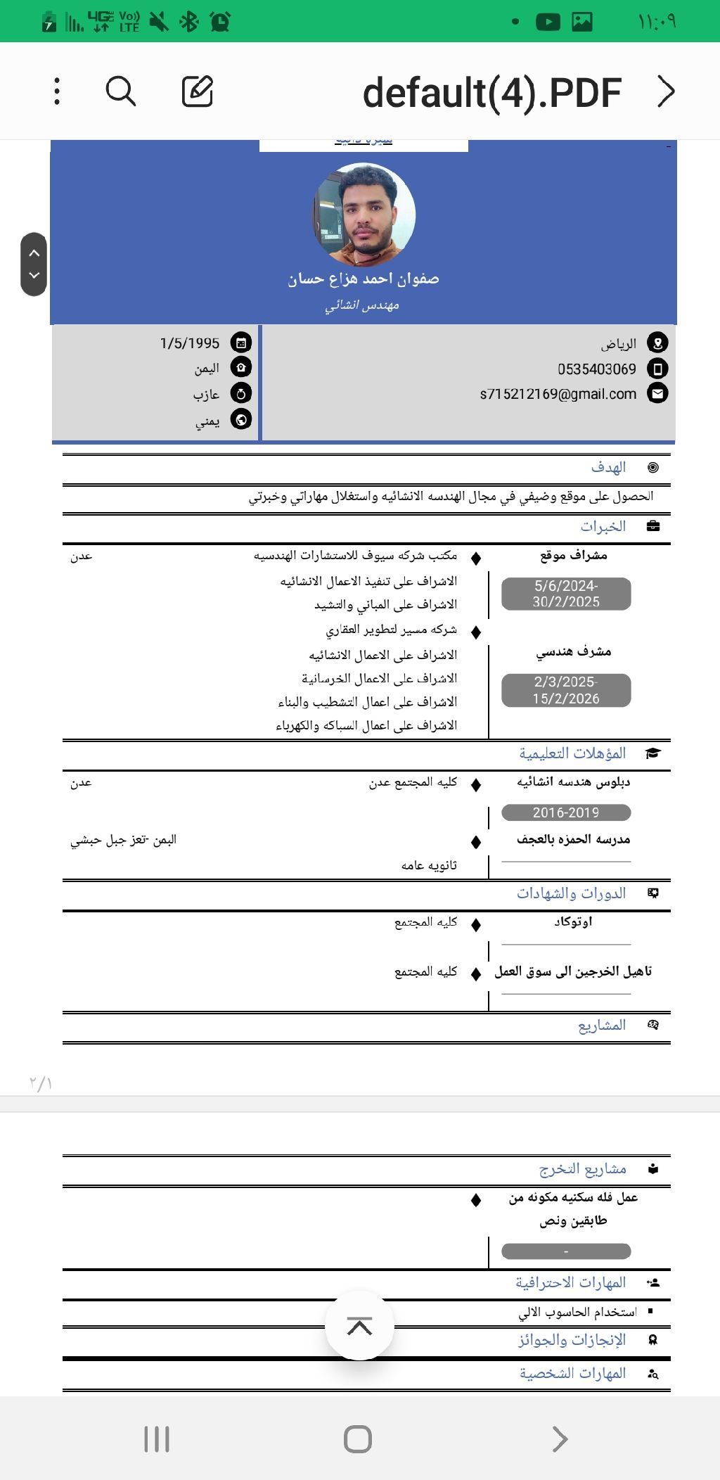مهندس مشرف لدي الخبرة الكافيه في الاشرافات الهندسيه الاشراف على الأعمال الخرسانية والانشائية والتشطيبات لدي القدرة على الالتزام بمواعيد العمل