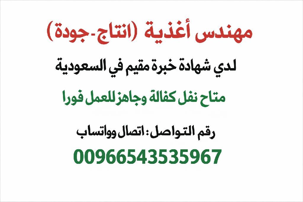 مهندس أغذية خبرة 10 سنوات في مجال الاشراف ومتابعة العملية الانتاجية وتحفيز العمالة لرفع الطاقة الانتاجية بأقل فاقد وبأعلى جودة. متابعة المشاكل الانتاجية والتنسيق بين الأقسام الأخرى (الجودة - الصيانة) اعداد التقارير والمراجعة الداخلية لتقارير حسب متطلبات الأيزو ومعرفة في الهاسب HACCP وكذلك GMP