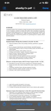 مهندس مكانيكا (قدرة) بخبرة 3 سنوات في محطات الطاقة وخطوط الانتاج. مؤهل لجميع عمليات الصيانة والتشغيل. مؤهل أيضا للعمل كمهندس موقع في مجال المباني والانشاءات من تصميم وتنفيذ الخرط الهندسية والقيام بعمليات الاشراف والمتابعة مع خلفية واسعة في بروتوكولات السلامة والصحة المهنية. مقيم حاليا في جدة