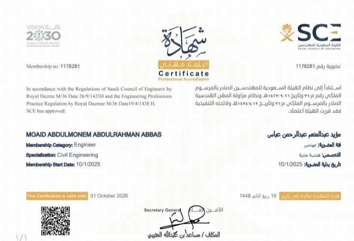 مهندس مدني سوداني، عضو بالهيئة السعودية للمهندسين، بخبرة عملية تمتد ل 4 سنوات في مجال الهندسة المدنية. امتلك خبرة في مجال الإنشاءات، والاشراف والتنفيذ، خاصة في أعمال التشطيبات. كما لدي خبرة متقدمة في العزل المائي والحراري وعزل الحقن (Injection) مع كفاءة عالية في متابعة الأعمال وفق الشروط والمواصفات الهندسية، والتعامل الاحترافي مع المقاولين والعمال. بالاضافة الى خبرتي في تشغيل وصيانة الطرق والجسور