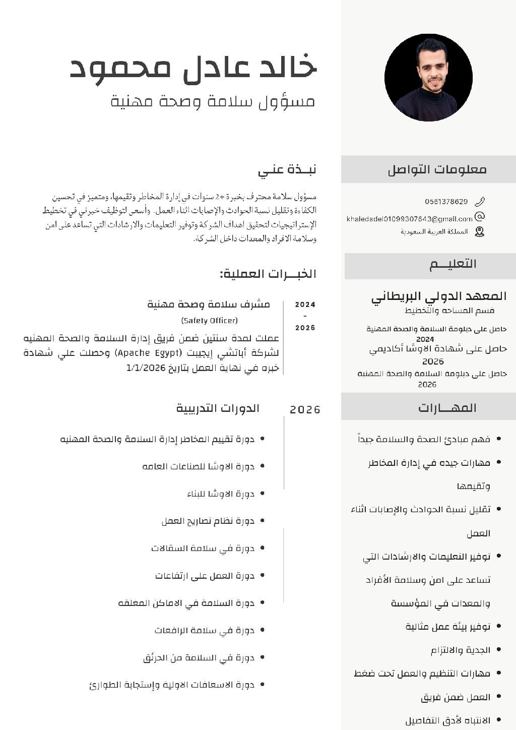 أنا سفتي متواجد في السعودية من فترة وبدور على شغل ك HSE Officer. في مجال السلامة والصحة المهنية في مشاريع الإنشاءات أنا خريج مساحة أرجو المساعدة لو سمحتم