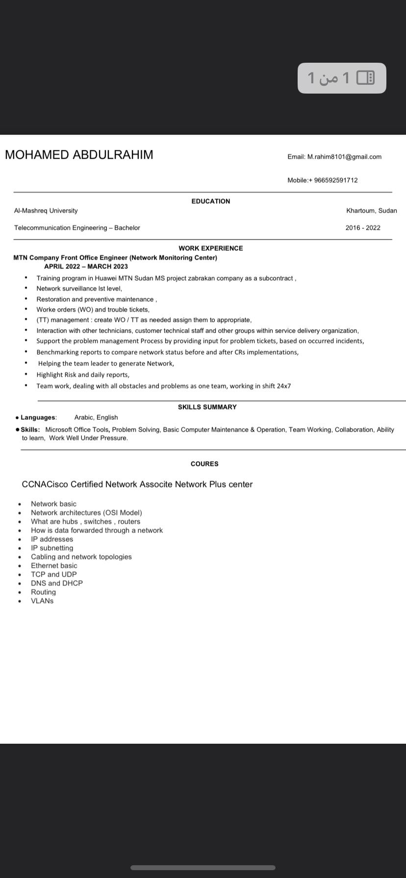 مهندس اتصالات سوداني مواليد إقامة رخصة ابحث عن عمل