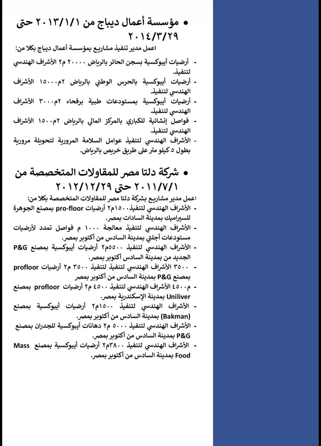 مهندس مدني انشائي بخبرة 16 عاما في المملكة العربية السعودية ودول الخليج، متخصص في تصميم وتنفيذ والاشراف على المشاريع الانشائية والبنية التحتية لدي خبرة في ادارة المشاريع وادارة المواقع الانشائية واعداد التقارير والجداول الزمني والحصر وملفات الفنيه للتقديم في المناقصات ومعتمد من الهيئة السعودية للمهندسين كمستشار هندسي، وحاصل على شهادات PMP - PMO - RMP. متمكن ابحث عن فرصة عمل تناسب خبراتي السابقه