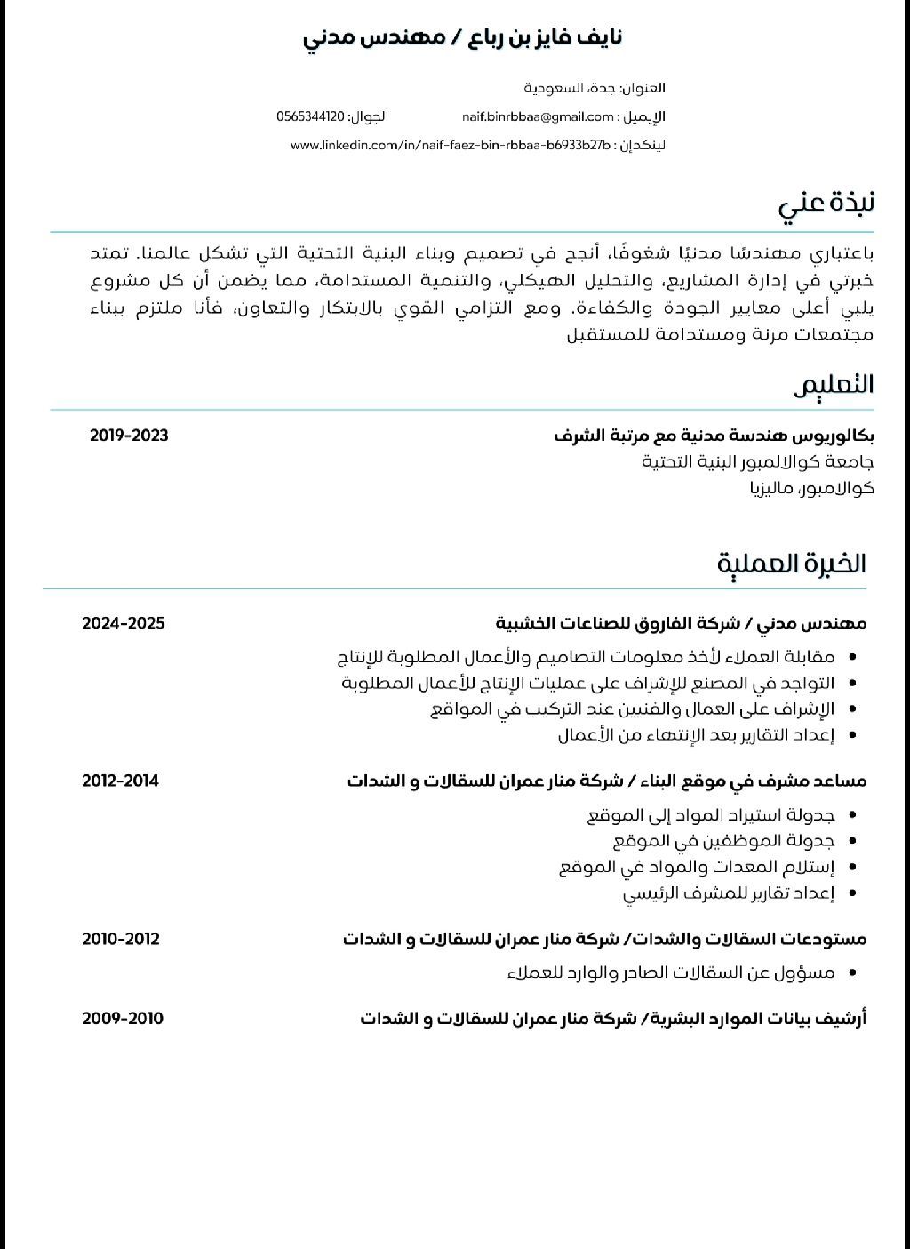 Civil Engineer, I have a membership in the Saudi Council of Engineers, Two years of experience in the construction field as a Supervisor Assistant. I am proficient in working with Autodesk AutoCAD design programs. Holds a diploma in PMP and Fire Fighting Training. Available to work in any city, ambitious and quick to learn, I am currently working on obtaining courses in BIM and CSI