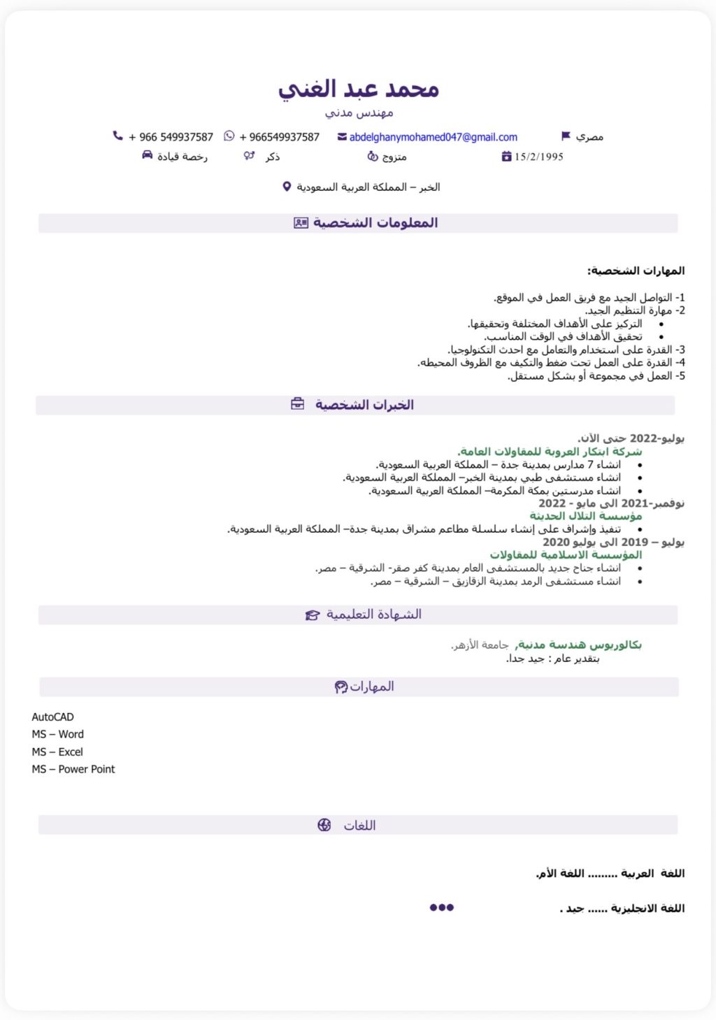 مهندس مدني خبرة خمس سنوات، ابحث عن عمل متواجد في مكة المكرمة