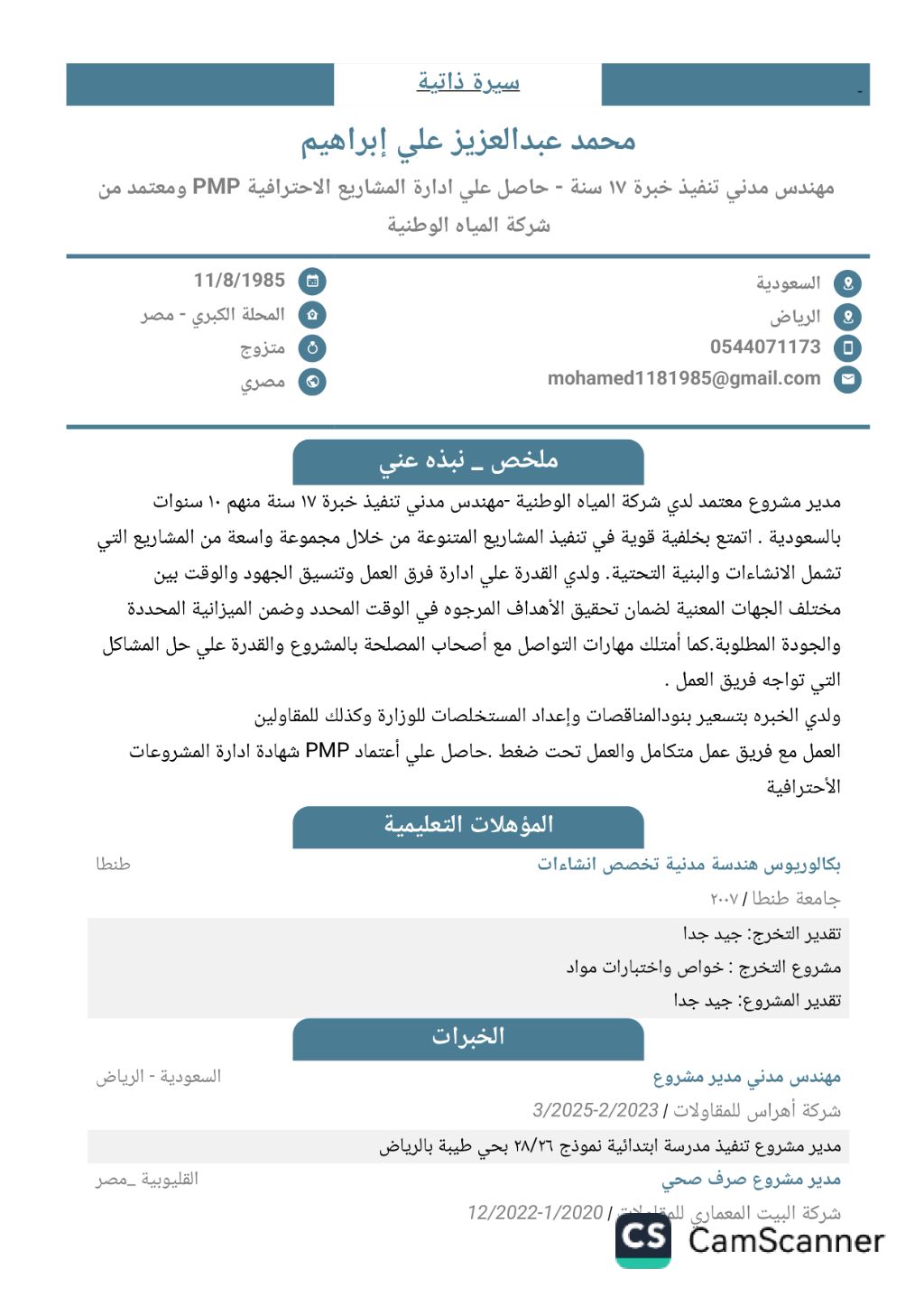 Civil Engineer Implementation/ Project Manager 16 years of experience in project implementation and management, holder of PMP has worked in project management of schools (TBC) sewage networks and popular markets. I have experience in bidding pricing, team management and using AutoCAD available for sponsorship transfer Riyadh Saudi Arabia