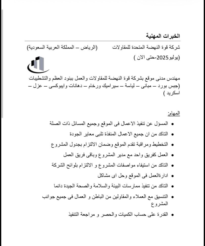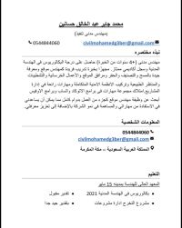 Civil Site Engineer Bachelor of Civil Engineering 3 years experience concrete and finishing Technical office work Proficient in programs AutoCAD - Sap - Mo Office Riyadh Saudi driving license