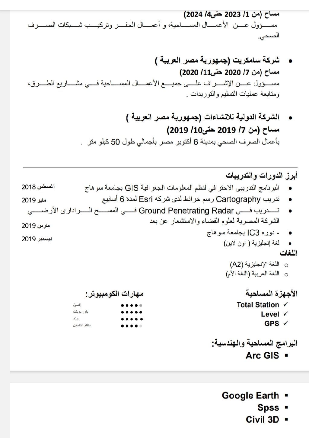 مساح عام متواجد حاليا في حائل خبرة 6 سنوات بالمشروعات الانشائية والطرق والاند سكيب والبنية التحتية والصرف الصحي - أجيد العمل على جميع الاجهزة والبرامج المساحية - معي اعتماد مهني من هيئة المهندسين السعودية ومطوف حاليا ومستعد للعمل بأي مكان بالمملكة وجاهز لنقل كفالة
