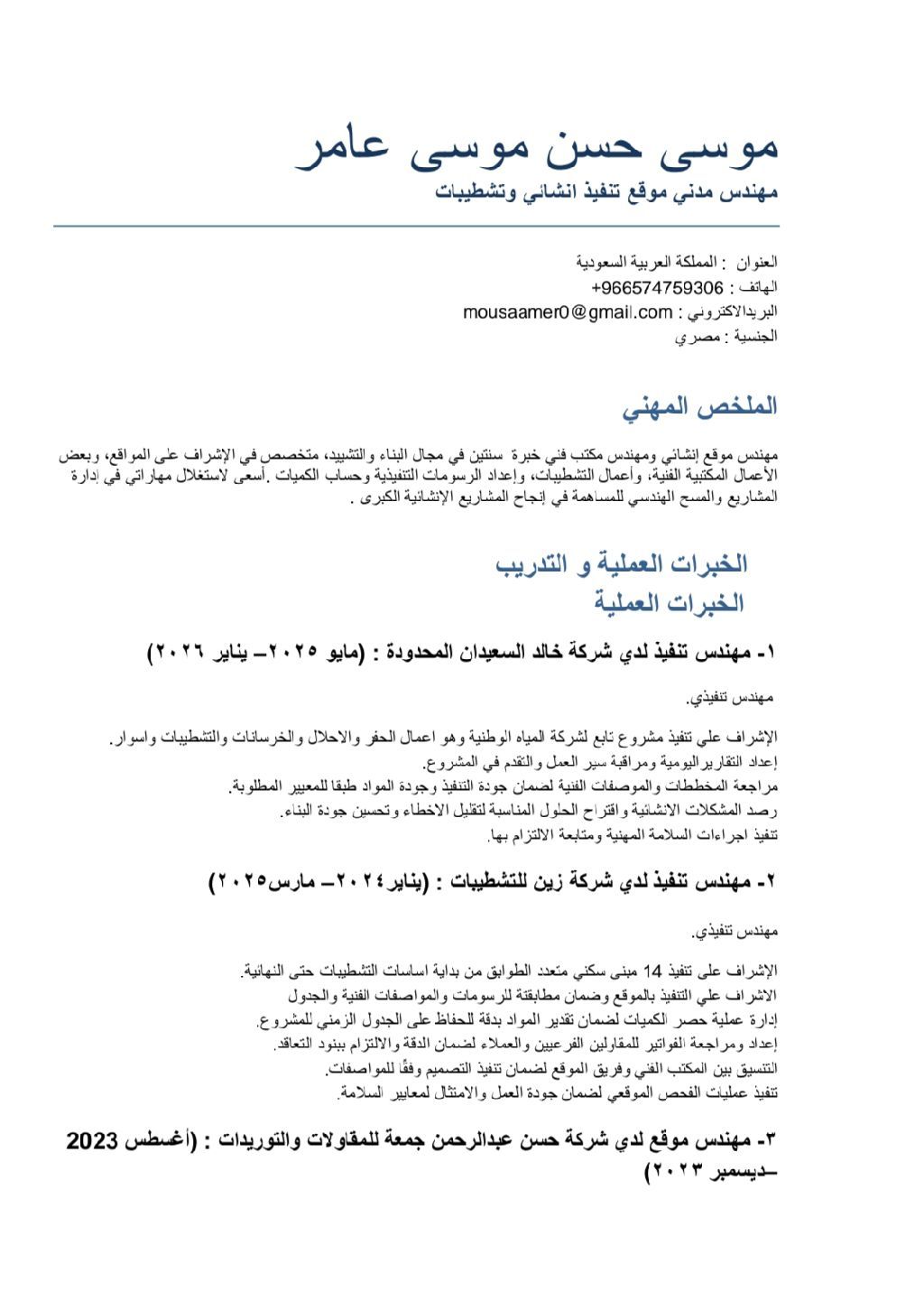مهندس مدني مصري خبرة سنتين ونصف منهم سنة في السعودية كمهندس موقع خبرة بالتنفيذ والاشراف علي جميع الأعمال الانشائية بالموقع واستلام جميع البنود وأعمال التشطيبات بجميع بنودها وعلي دراية ببعض أعمال المكتب الفني من حصر كميات وحسابها وإدارة كاملة للموقع متاح نقل كفالة متاح العمل في جميع أنحاء المملكة