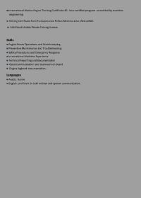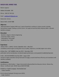 Marine Engineer with international field experience on commercial vessels. Holder of a Bachelor's degree from the University of Aden and certified maritime qualifications. Seeking a job opportunity in Saudi Arabia to contribute professional value and practical expertise