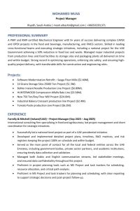 I am a mechanical engineer specialized in production, with over 10 years of experience in the food, beverage, and feed industries. I also have proven project management experience in the UAE and hold a globally recognized Project Management Professional (PMP) certification. I am a Sudanese national currently seeking opportunities as a Project Manager or Production Manager