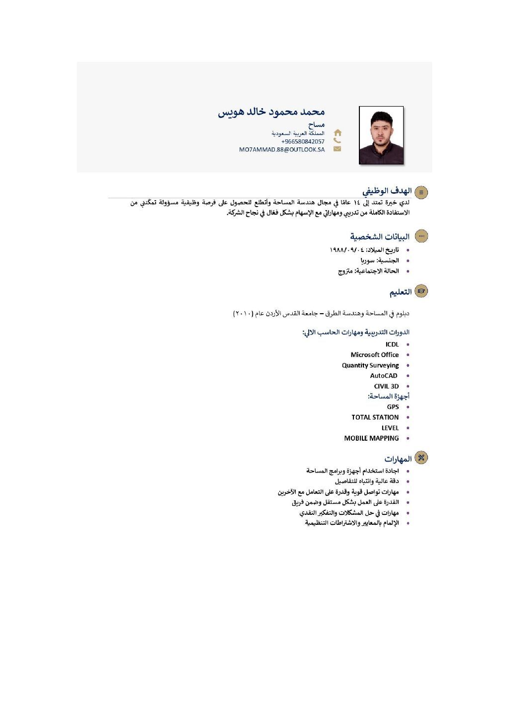 مساح عام ابحث عن عمل متاح للعمل فورا خبرة في مجال الطرق والانشاءات والبنية التحتية (لفل - توتل استيشن - جيبي أس - اوتوكاد)