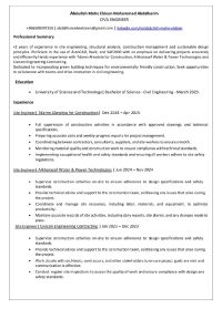 2 years of experience in site engineering, structural analysis, construction management and sustainable design principles. Proficient in the use of AutoCAD, Revit, and SAP2000 with an emphasis on delivering projects accurately and efficiently. Hands experience with Tdamn Alwatnia for Construction, Alkhorayef Water & Power Technologies and Civicon Engineering Contracting. Dedicated to incorporating