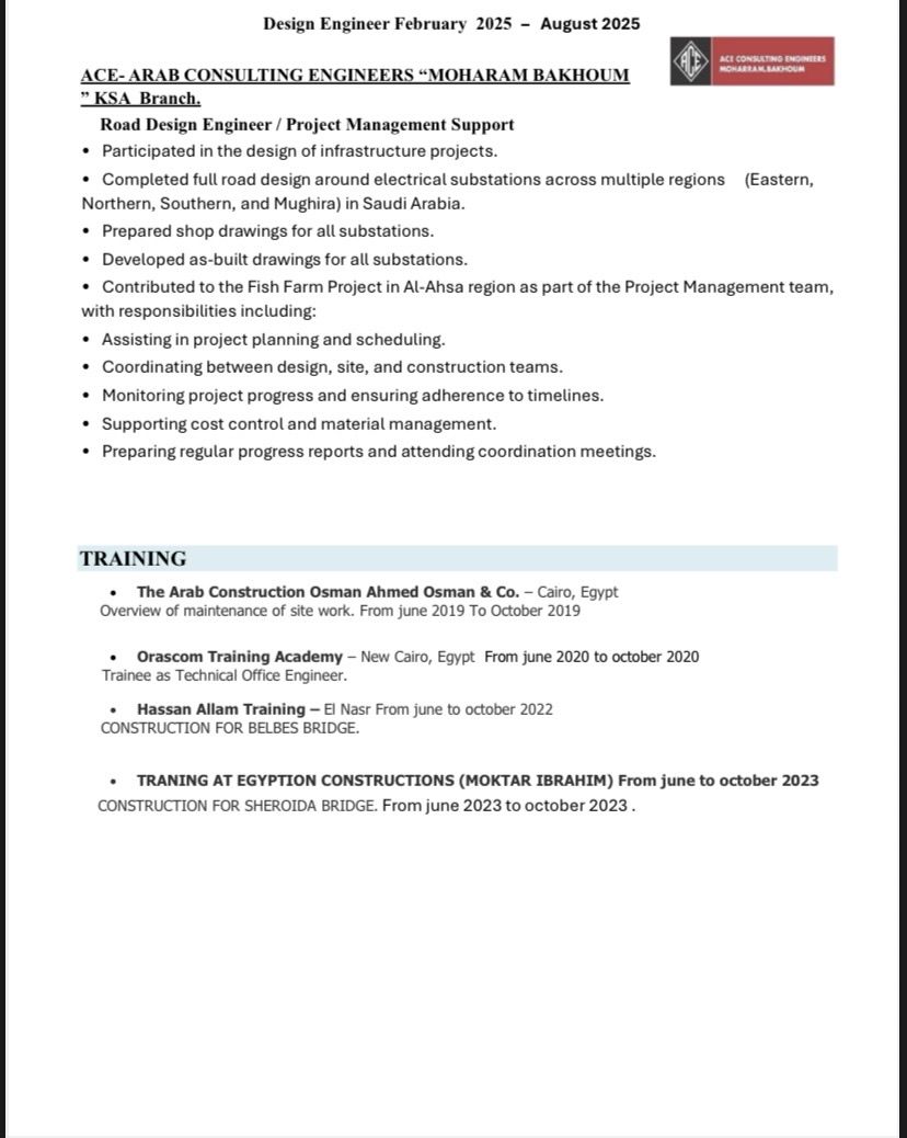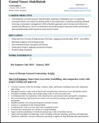 مهندس مدني في الدمام عندي خبرة في الأعمال الانشائية من استلام الأعمال من بدايته حتى نهائيته وأيضا لدي الخبرة في جميع أعمال التشطيبات وأعمال لاند سكيب وأعمال البنيه التحتية وحصر ومستخلصات وعمل تقارير يوميه وأسبوعيه وامتلك رخصة قيادة وإقامة سارية ولا مانع من العمل في أي مكان بالمملكة العربية السعودية ولدي أيضا خبرة في تصميم الطرق عن طريق برنامج civil 3d وأيضا أعمال المكتب الفني وأعمال الحصر