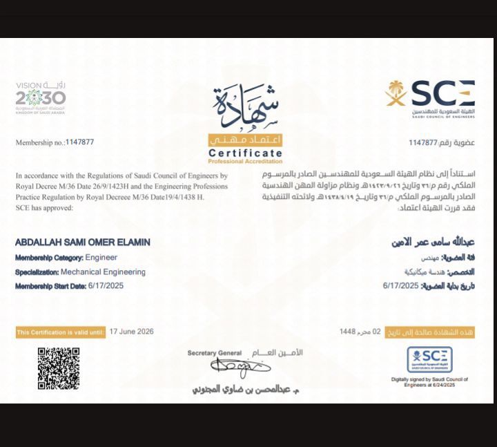 Sudanese mechanical engineer, fresh graduate, worked in the maintenance field for a year, registered with the Saudi Council of Engineers, available for sponsorship transfer, looking for a job opportunity in any field of engineering
