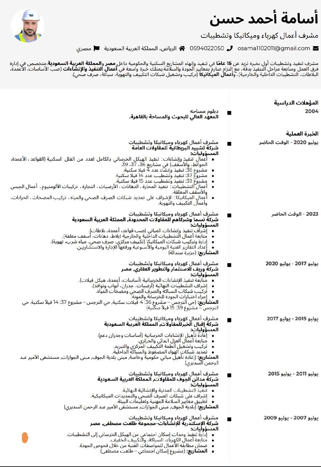 مراقب معماري تشطيبات وكهرباء وميكانيكا