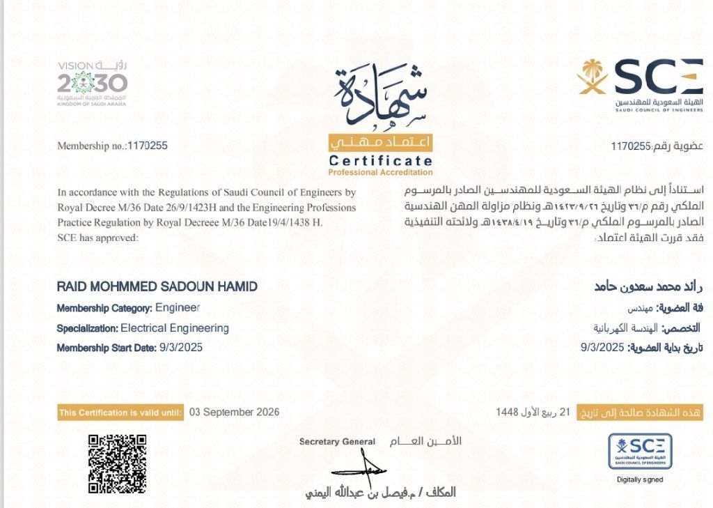 مهندس كهرباء سوداني الجنسية، خريج 2021، مقيم في الرياض خبرة في تصميم وتنفيذ أعمال التمديدات الكهربائية والتيار الخفيف وانذار الحريق وأعمال المخططات التنفيذية (Shop Drawing) والحصر والتسعير، متمكن من استخدام البرامج الهندسية مثل AutoCAD, Revit، Diluxe evo حاصل علي تسجيل في الهيئة السعودية للمهندسين مستعد للعمل في جميع أنحاء المملكة