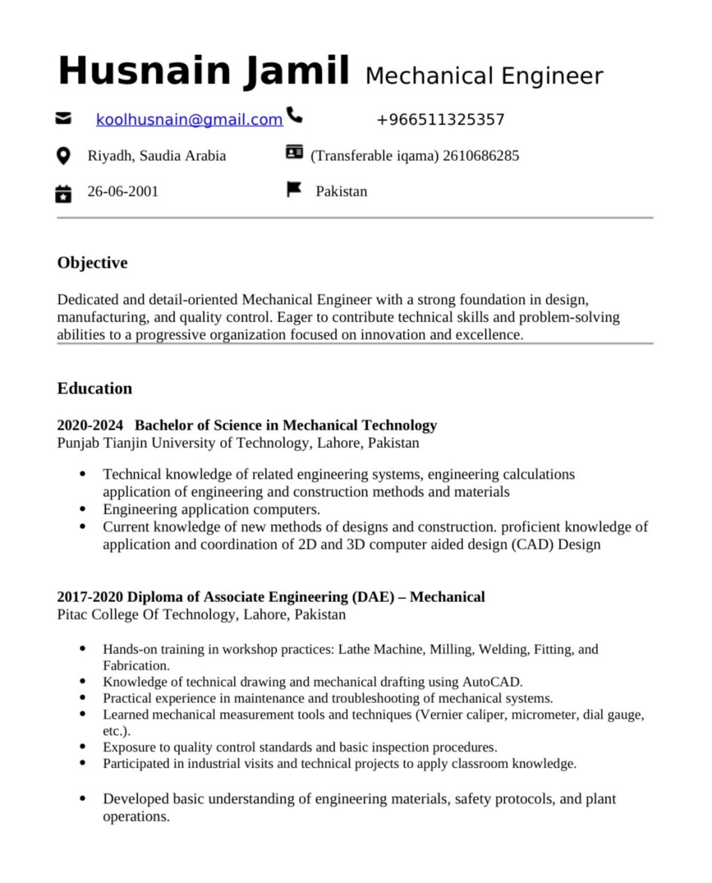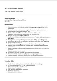 Mechanical engineer - 02 Year of Experience in the field of Production and Contracting. holds a bachelor's degree in mechanical engineering, I am looking for an opportunity to join a contracting company or engineering office, with the aim of developing my engineering skills