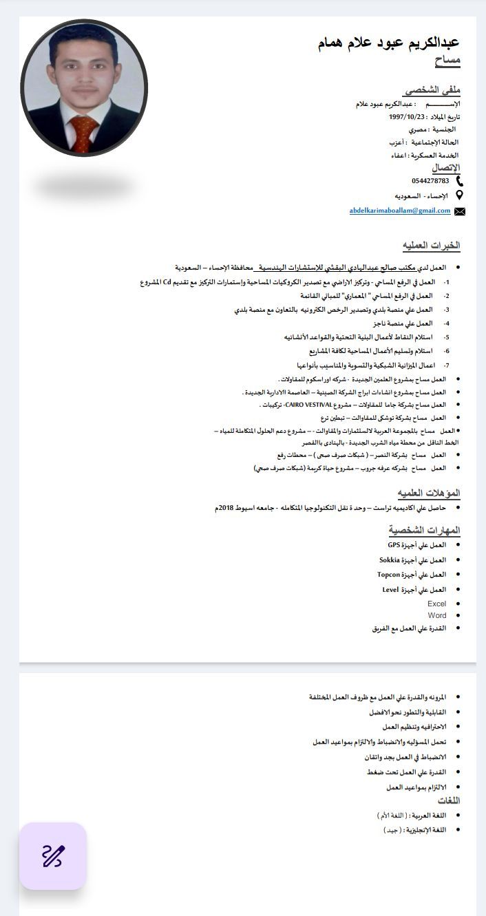 مهندس مساح متواجد في الاحساء ابحث عن فرصة عمل خبرة في المكاتب الهندسية لدي رخصة قيادة سارية ولدي تسجيل هيئة اعمل على الاجهزة المساحية جيبي أس توتل استيشن وجهاز الليفل والبرامج الهندسية (ملاحظة) أنا معلن فقط التواصل يكون مع الرقم اللي بالاعلان