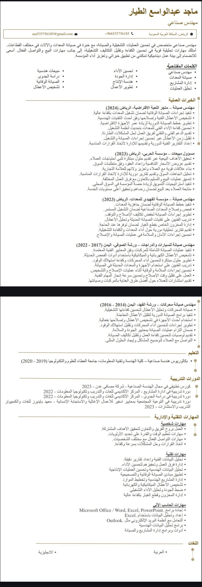 Industrial engineer. مهندس صناعي بخبرة تتجاوز 6 سنوات في الصيانة الوقائية وتحسين العمليات التشغيلية في قطاعات المعدات الصناعية والسيارات. بارع في تحليل الأعطال وتحسين كفاءة الأداء وتقليل التكاليف التشغيلية، ولدي مهارات قوية في إدارة المشاريع وقيادة فرق العمل وتحقيق أهداف الجودة والانتاجية