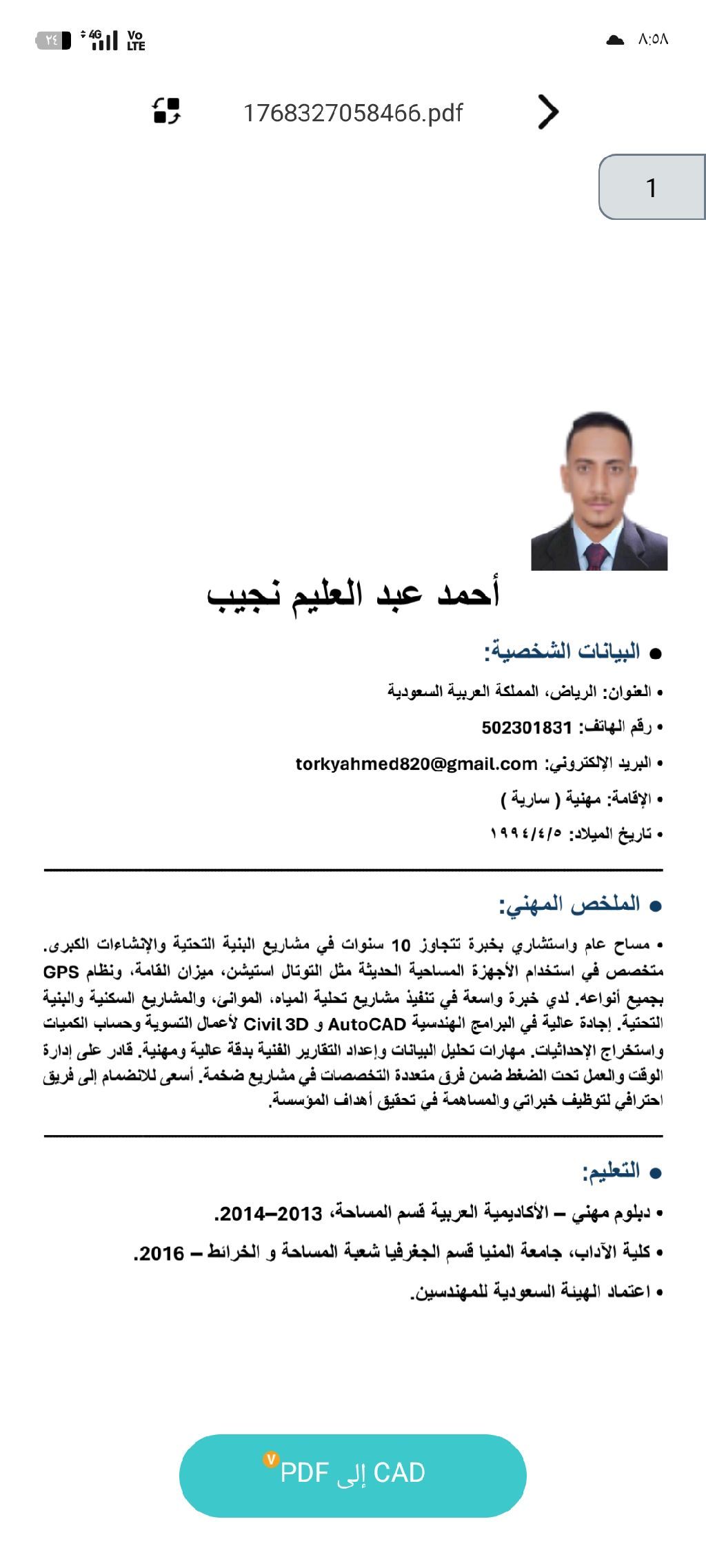 مساح موقع ومكتب فني خبرة 10 سنوات في مجال الإنشاءات والبنية التحتية شبكات المياه والصرف الصحي خبرة علي جميع اجهزة المساحة توتل استيشن وGPS والبرامج الهندسية AutoCAD civil 3D وحساب الكميات واستخراج الإحداثيات وتجهيز الداتا لفريق العمل إقامة سارية قابل للنقل واعتماد هيئة المهندسين السعوديين امكانية العمل في أي مكان داخل المملكة