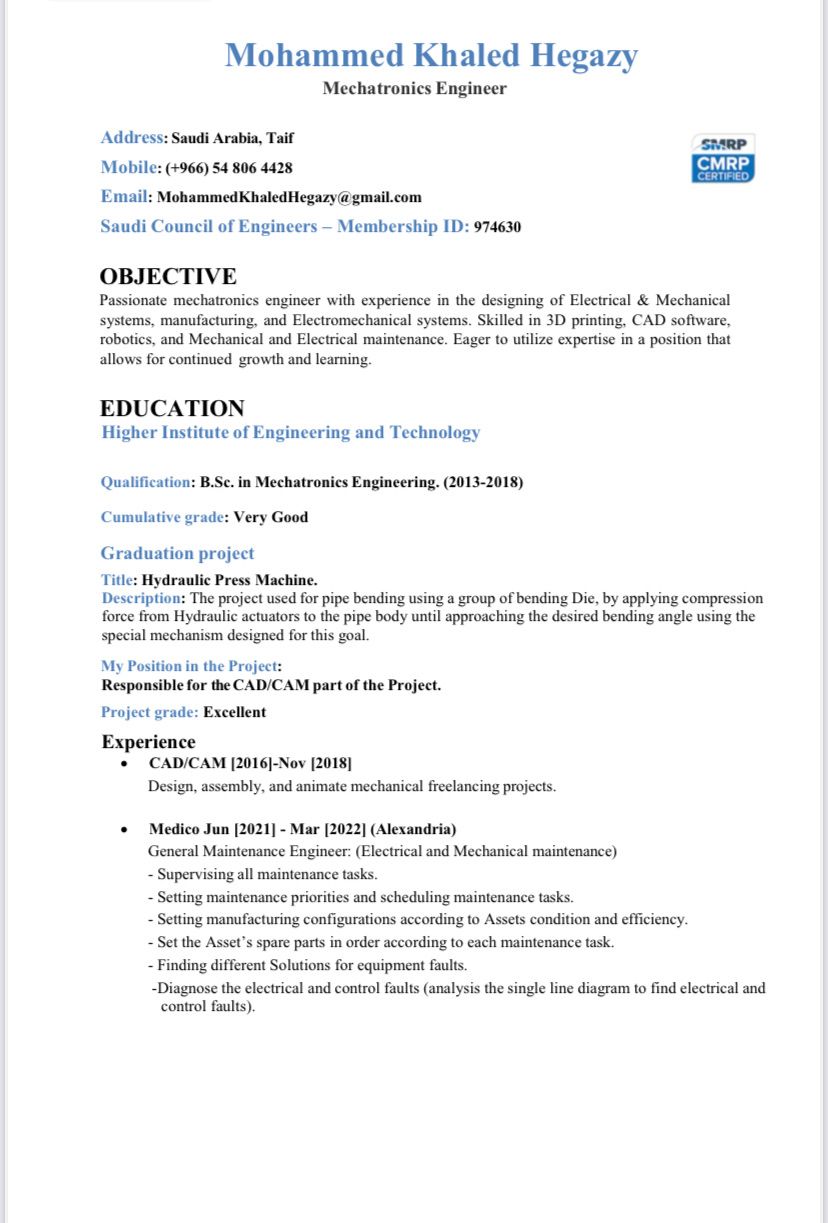 مهندس كهرباء حاصل على عضوية هيئة المهندسين السعوديين خبرة في تصميم الأنظمة الكهربائية وخبرة في اعداد المخططات التنفيذية ومخططات طبقا على أرض الواقع، خبرة في تسعير البنود الكهربائية، خبرة في تنفيذ كافة الأنظمة الكهربائية