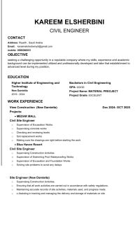 كريم الشربيني مهندس مدني خبرة سنة وابحث عن عمل. متواجد حاليا في الرياض معي إقامة سنة