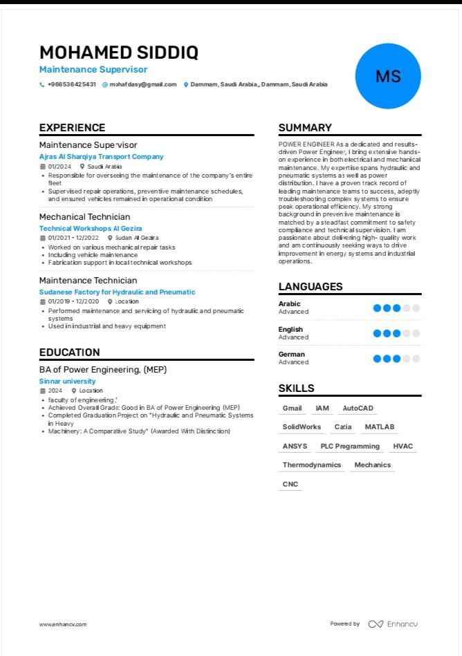 مهندس ميكانيكا بخبرة 5 سنوات، متخصص في الإدارة الفعالة ل المعدات الثقيلة (صيانة وتشغيل وتشخيص أعطال) وأنظمة انذار الحرائق وتنفيذ اجراءات السلامة والصحة المهنية