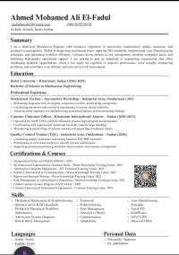Mechanical Engineer holding a Bachelor’s degree in Mechanical Engineering. Certified in Automotive Computer Diagnostics and OSHA Occupational Safety and Health. Seeking a position to apply my technical and management skills, contribute to workplace safety, and enhance operational efficiency
