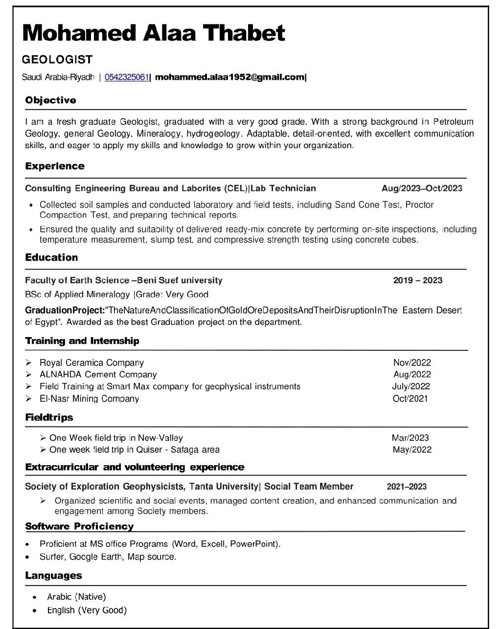 ابحث عن وظيفة في أحد مختبرات فحص التربة أو مصانع الخرسانة الجاهزة أو شركات التعدين أو الاسمنت أو السيراميك أو حفر آبار المياه أو ضبط الجودة، أنا جيولوجي بخبرة سابقة في مختبر فحص التربة والخرسانة ومجال دراستي الأساسي علوم الأرض والتخصص الجيولوجيا والمعادن التطبيقية، في حالة وجود وظيفة شاغرة يرجى التواصل معي