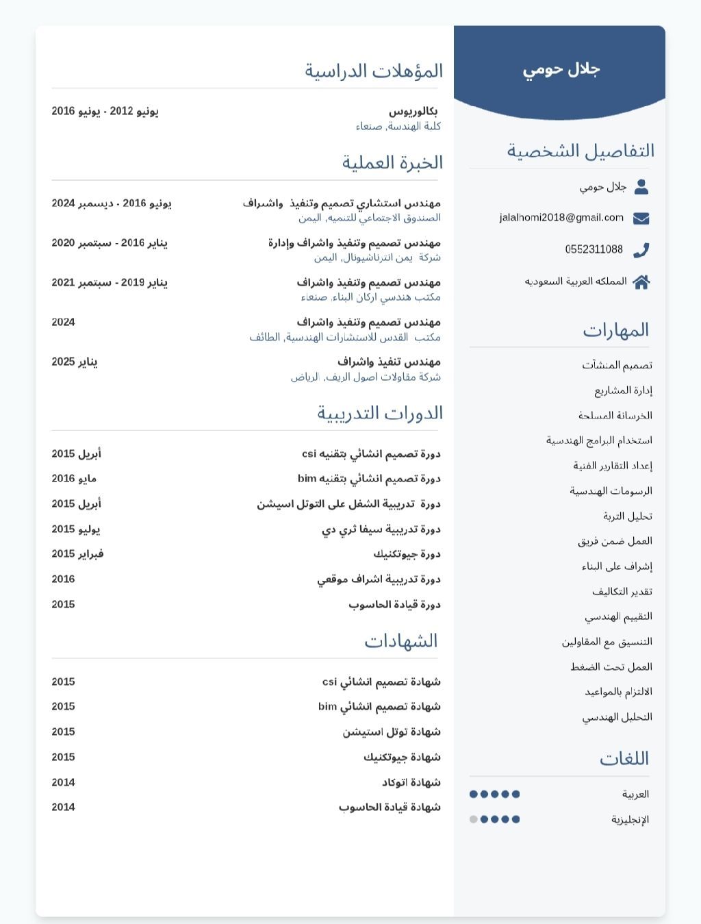مهندس مدني خبرة 8 سنوات تصميم وتنفيذ واشراف وإدارة مشاريع عظم وتشطيبات داخلية وخارجية وحساب كميات
