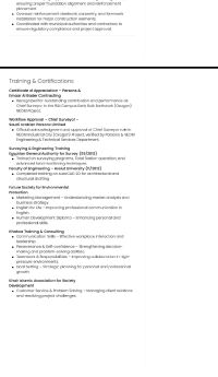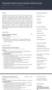 مساح عام بخبرة تمتد الى 13 عاما في جميع مجالات هندسة المساحة، تشمل أعمال المساحة للإنشاءات، والمساحة في مشاريع البنية التحتية، بالاضافة الى خبرة قوية في أعمال المكتب الفني. متمكن من استخدام أحدث التقنيات والاجهزة المساحية، مع قدرة عالية على إدارة المشاريع وضمان دقة وجودة المخرجات