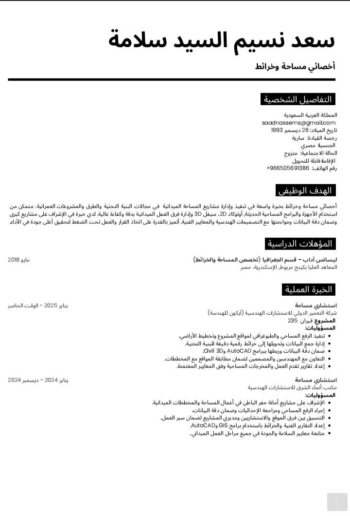 مساح عام (جاهز للانضمام فورا) يوجد رخصة قيادة - يوجد اعتماد من الهيئة السعودية للمهندسين