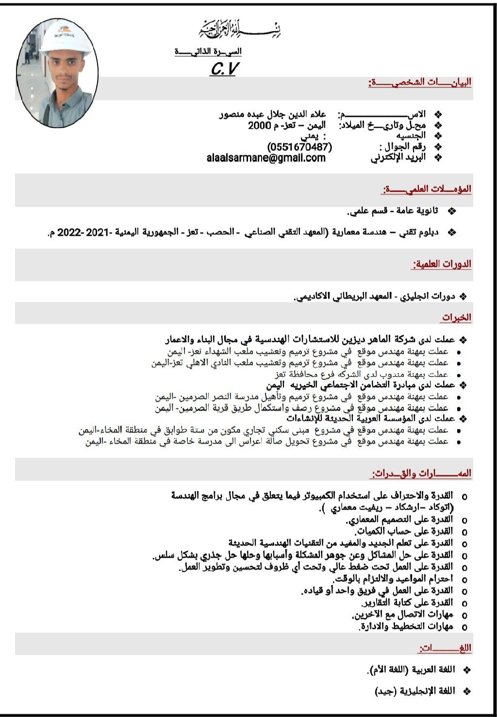 مهندس معماري من اليمن لدي خبرة ممتازة ثلاث سنوات في مجال الاشراف الموقعي متاح للعمل ومتواجد في المملكة المنطقة الشرقية