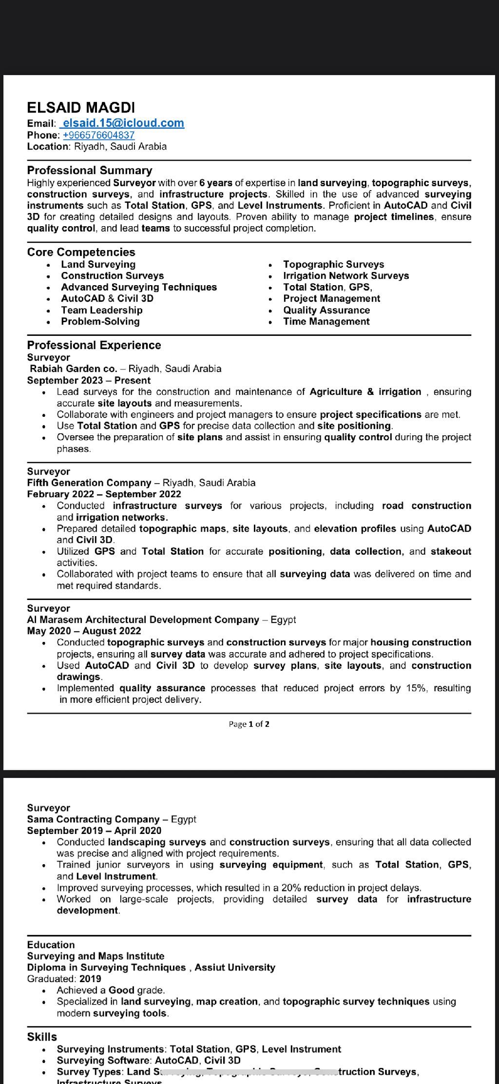 مساح متواجد في السعودية ابحث عن فرصة عمل لدي اعمل في مشروع القدية Six Flags ومشروع الطرق في الدرعية ومشروع البنيه التحتية علي جميع الاجهزة المساحية