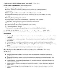 المهندس عبدالرحمن عبد العال الموقع خميس مشيط - المملكة العربية السعودية البريد الهاتف 966593477578 الاقامة قابلة للتحويل رخصة قيادة متوفرة نبذة عني مهندس مدني بخبرة أكثر من 5 سنوات في إدارة المشاريع والاشراف الهندسي وتنفيذ الأعمال الانشائية والبنية التحتية. أتميز بقدرتي العالية على قيادة الفرق الفنية وضمان تنفيذ المشاريع وفق أعلى معايير الجودة