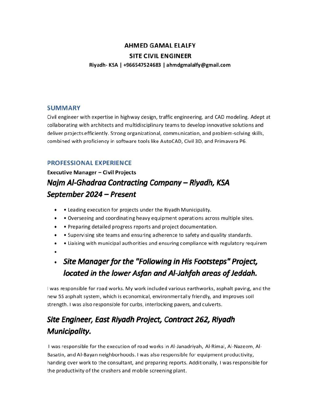 مهندس طرق ابحث عن فرصة عمل متواجد داخل السعودية إقامة سارية. مع أتاحه نقل الكفالة