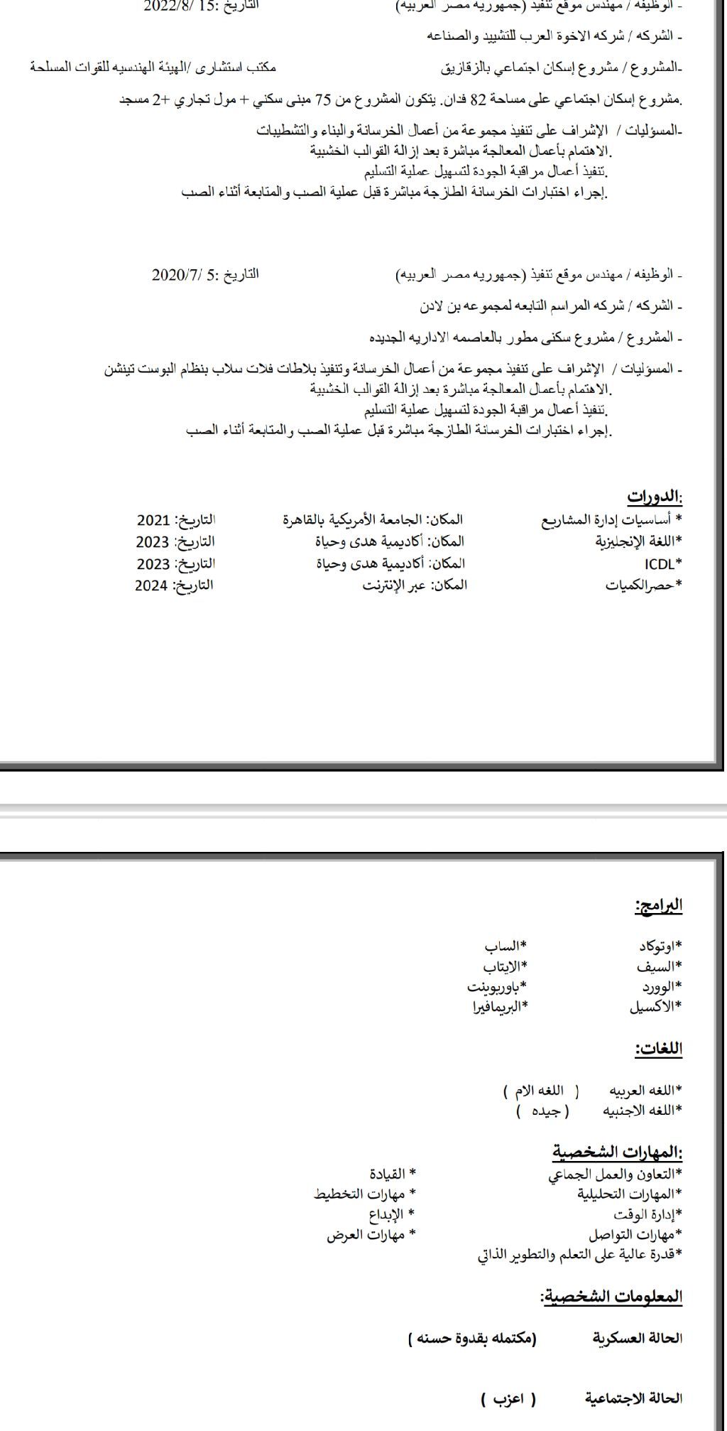 معكم أحمد إبراهيم مهندس مدني تنفيذ وحصر كميات خبرة 3 سنوات أعمال خرسانات وتشطيبات