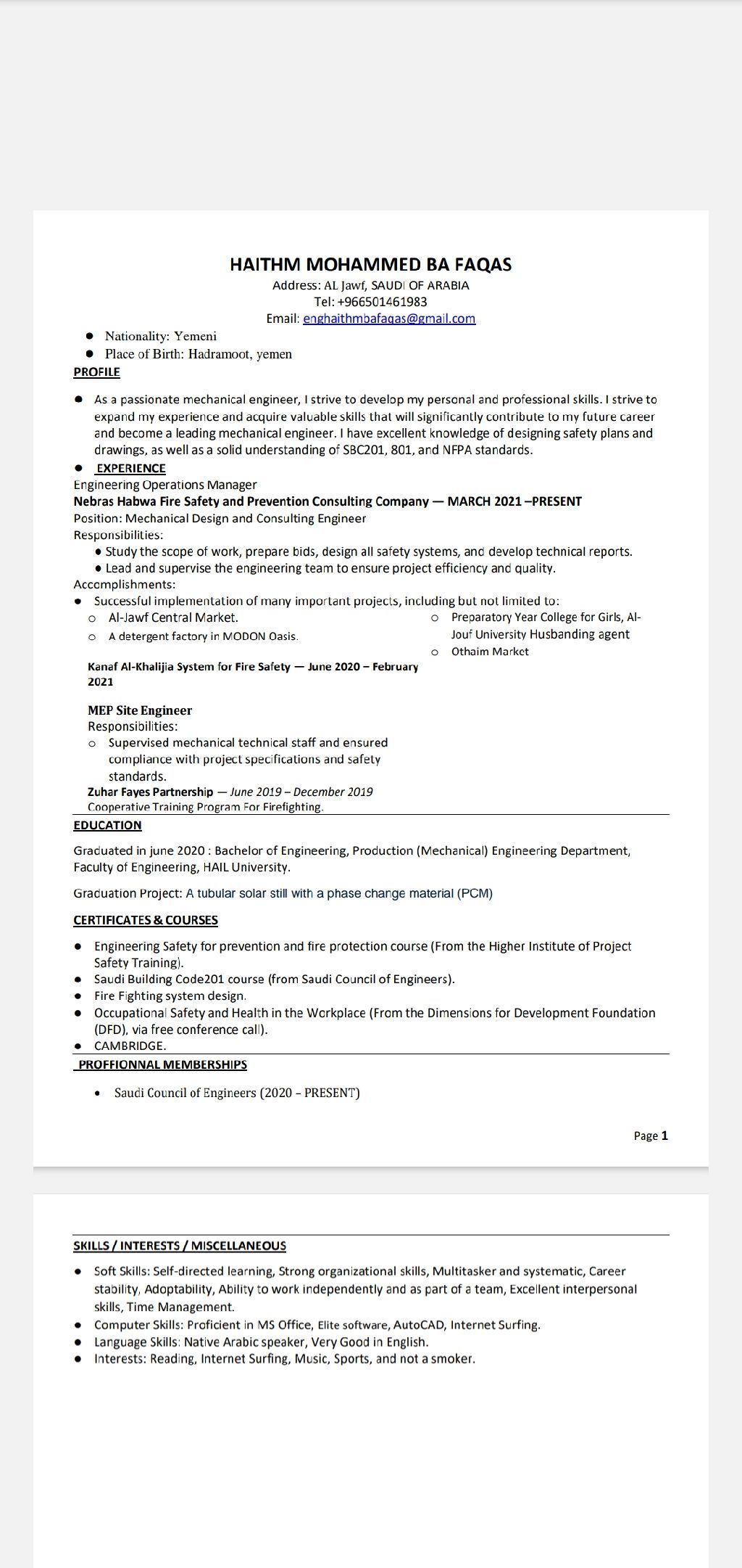 مهندس ميكانيكا خبرة 5 سنوات في مجال تصميم مخططات السلامة والوقاية من الحريق طبقا للكود السعودي واشتراطات الدفاع المدني
